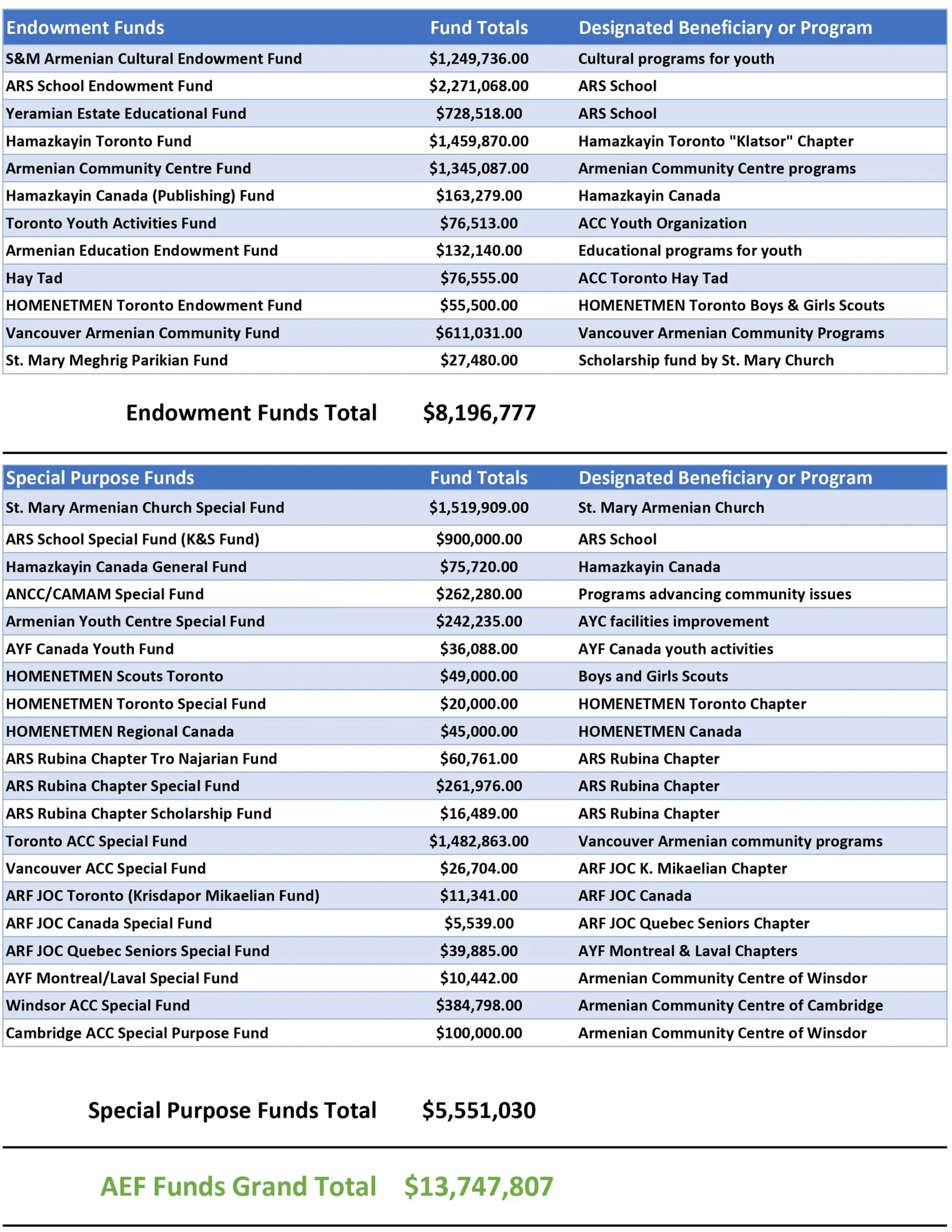 AEF Financials AEF Endowments and Special Purpose Funds In Canadian Dollars, as of December 31st, 2025.